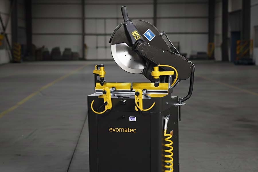 Manual cutting process and operating system safe cutting with double spring system and saw barrier Pneumatic vertical and horizontal clampsCast core with impact resistance Cutting at any desired angle between -45° and +45° Cutting at 0°, 15°, 22.5°, 30°, 45° right and left fixed angles